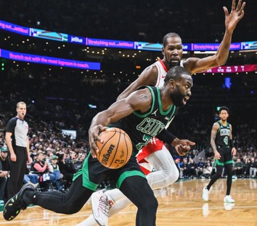 举两个例子,布朗是典型的遇强则强。最近一场打过去2周状态最火热的快船,布朗防守端主动请缨单防小卡,进攻端不断点名哈登,全场爆砍50分5助攻,26中18,三分球10中6,带队31分大胜!包括不久前打夺冠热门尼克斯,布朗全场24中16,轰下42分4篮板4助攻,带队拿到关键胜利。美媒《BR》给出统计,布朗本赛季在前三节,两项命中率分别为:51.3%+32%;48.5%+35.6%;53.5%+37.3%,但是到了第四节,两项命中率为50%+44.7%,受助攻率低至26.9%。简单来说,打到关键时刻,布朗可以极高的效率挺身而出解决战斗。