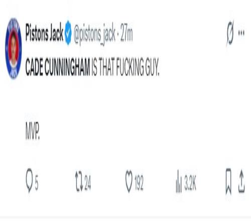 活塞媒体:凯德-坎宁安这个该死的家伙就是MVP!