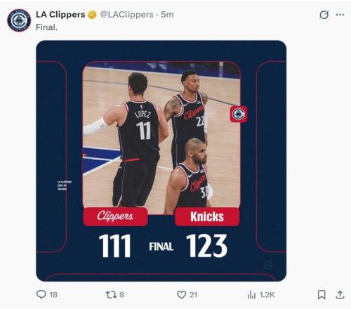 北京时间1月8日,NBA常规赛,快船以111-123惨败尼克斯。这场比赛上半场快船掌控局势,第三节快船的体能出现问题防守端是漏洞百出尼克斯趁势反超,末节快船的防守依旧没有起色加上两个核心连连打铁,最终快船被尼克斯逆转,哈登17中6手感不佳。