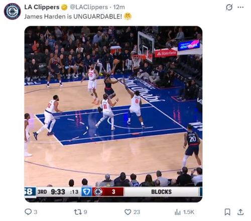 一边倒!快船最多领先22分:小卡带伤出战,哈登10中7轰22分