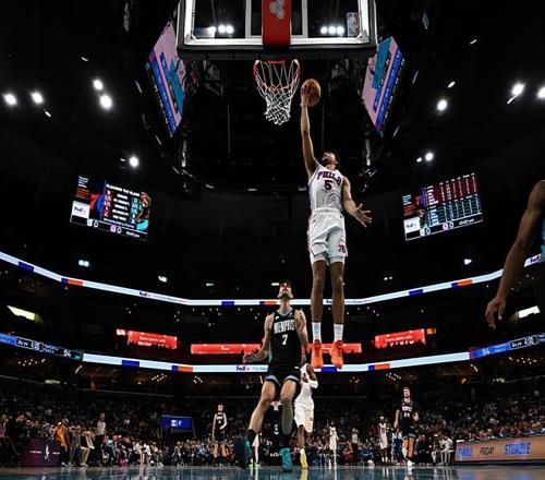 本场比赛中,76人的替补后场大将昆汀-格莱姆斯(Quentin Grimes)的表现还是非常出色的。格莱姆斯全场出场37分31秒,投篮9中4,三分线外6中2,罚球2中1,得到了11分3篮板3助攻3抢断的数据,没有失误和犯规,正负值更是达到了全场最高的+18。格莱姆斯在进攻端受制于球权没有办法为球队提供更多的支持,但是他也还是得到了一些分数的,而且他也能够在一定程度上起到分享球方面的作用。最关键的是,格莱姆斯在防守端的表现确实是相当突出,他确实是能够在防守端起到关键的作用。格莱姆斯防守贾-莫兰特(Ja Morant)的效果相当不错,格莱姆斯一下去,莫兰特就能随便乱杀了。以莫兰特的状态,如果没有格莱姆斯,他应该是能打出50+的数据的。+18的正负值也能够说明一点,格莱姆斯在场上对于比赛的影响力非常惊人。