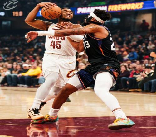 骑士能够在主场取得一场大胜,进攻核心米切尔功不可没,在太阳一度派出狄龙盯防他的情况下,仍然凭借18投10中的效率,交出了34分、10个篮板、7次助攻、2次抢断和1个封盖的全面个人数据。