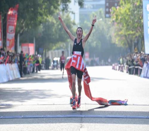 ▲半马项目-男子冠军冲线